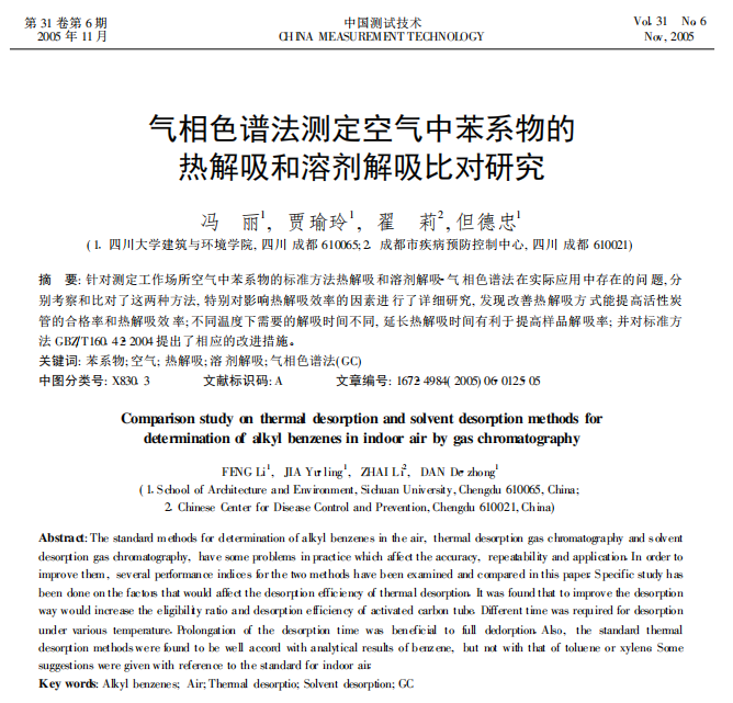 氣相色譜法測定空氣中苯系物的 熱解吸和溶劑解吸比對研究 氣相色譜法測定空氣中苯系物的 熱解吸和溶劑解吸比對研究 馮 麗1 , 賈瑜玲1 , 翟 莉... 更新日期:2020-08-11 下載包(1)