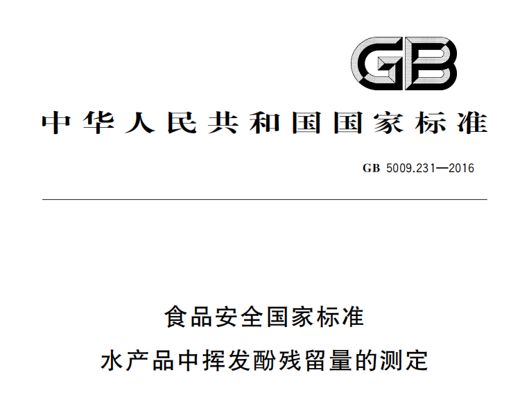 GB 5009231-2016 食品安全國家標準 水產品中揮發酚殘留量的測定 更新日期:2023-01-03 下載包(1)